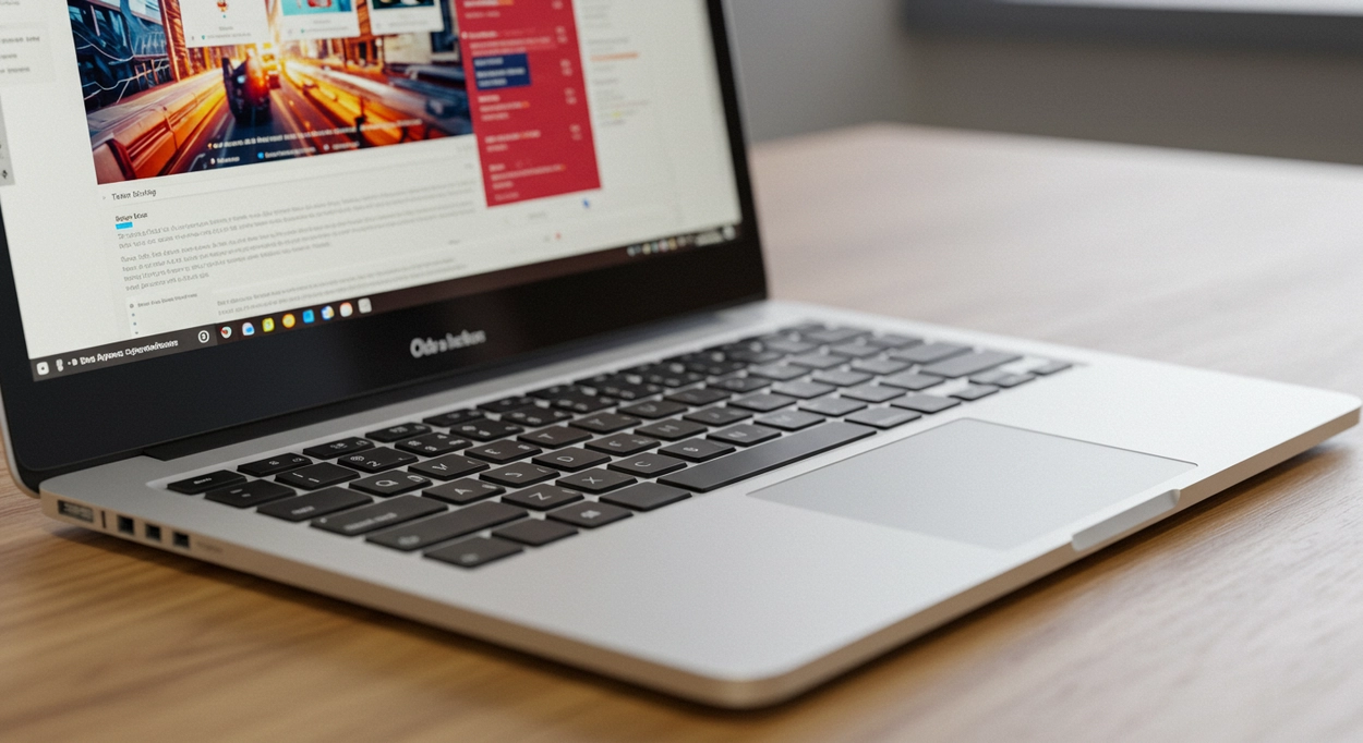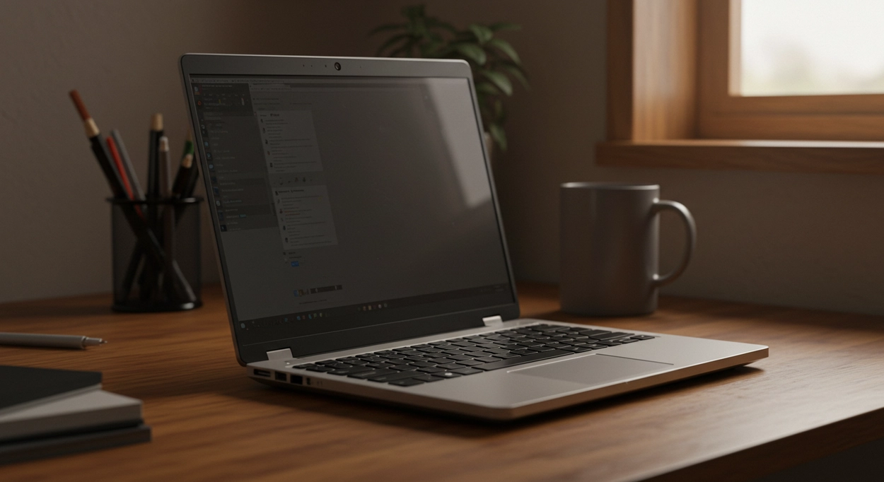 깔끔한 디자인의 노트북과 집중된 작업 공간